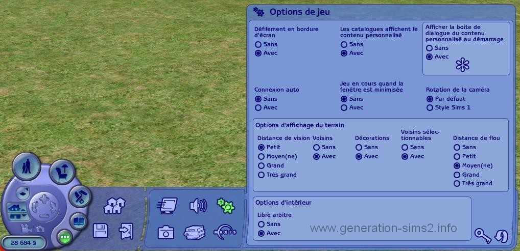 Options - options du jeu - cliquez sur l'icone en forme de clef.